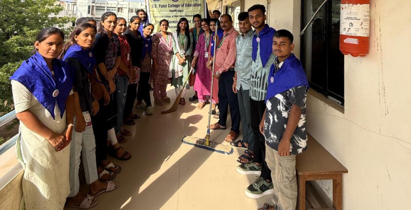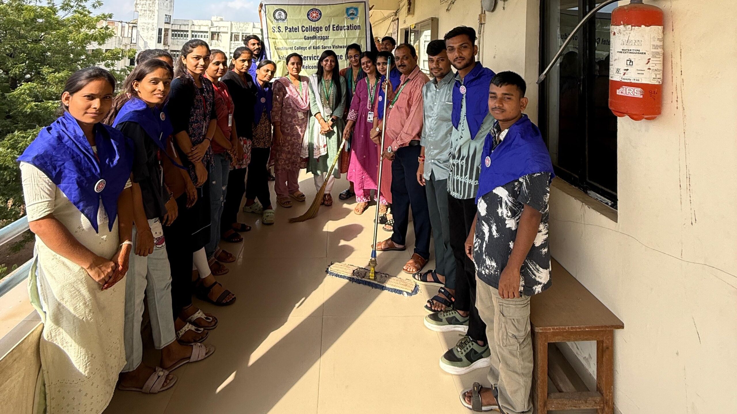 કડી સર્વ વિશ્વવિદ્યાલય સંલગ્ન ફેકલ્ટી ઓફ એજ્યુકેશનની એસ.એસ.પટેલ કોલેજ ઓફ એજ્યુકેશન અને આર.એચ.પટેલ ઈંગ્લીશ મીડીયમ બી.એડ, કોલેજ સેકટર-૨૩, ગાંધીનગર ખાતે તા.01/10/25ના રોજ કોલેજના એન.એસ.એસ વિભાગ દ્વારા સ્વચ્છતા અંગે વિદ્યાર્થીઓ જાગૃત થાય તે હેતુથી સ્વચ્છતા અભિયાન કાર્યક્રમનું આયોજન કરવામાં આવ્યું હતું,આ કાર્યક્રમમાં બંને કોલેજોના એચ.ઓ.ડી. ડૉ.સુનીતાબેન લીલાણી, ડૉ.કુસુમબેન યાદવ,બંને કોલેજના અધ્યાપકો અને વિદ્યાર્થીઓએ ઉપસ્થિત રહી સફાઈ કામ કર્યું હતું. સમગ્ર કાર્યક્રમનું આયોજન પ્રો.નરેન્દ્રભાઈ નાયી અને ડૉ.નંદકિશોર પીપલકરે કર્યું હતું.